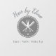 Welcome clients with calm, confidence, and class. This soft pastel salon window cling features a customisable name header, a classic star-and-scissors badge, and subtle Hair | Nails | Make Up text — all laid over a gentle green-yellow watercolor background.
