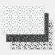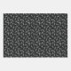 Hair stylist themed wrapping paper sheets featuring three different patterns with scissors, combs, blow drier and other tools useful for a hair stylist in black, white, and a touch of turquoise.
