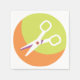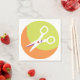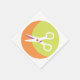 This design is a scissors icon. The scissors are on a green and orange background. This scissors icon design looks great on this Paper Napkins