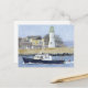 Postcard with artwork of a lobster boat entering a harbor with a lighthouse in the background. Artwork: Gouache on panel. Coypright Dominic A. White. All rights reserved.