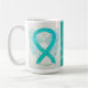 Scleroderma uses a teal awareness ribbon to show support for its awareness. This custom mug features teal awareness ribbon guardian angel art paintings with the message "I Hope and Support Scleroderma Awareness!" The custom teal awareness guardian angel ribbon art picture coffee cups or mugs can be customised with personalised messages to make great cause mugs for awareness fundraisers, awareness cup gifts, or other special events or cause support occasions. Make your own customised words for a personal message of hope and support to share!