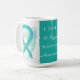 Scleroderma uses a teal awareness ribbon to show support for its awareness. This custom mug features teal awareness ribbon guardian angel art paintings with the message "I Hope and Support Scleroderma Awareness!" The custom teal awareness guardian angel ribbon art picture coffee cups or mugs can be customised with personalised messages to make great cause mugs for awareness fundraisers, awareness cup gifts, or other special events or cause support occasions. Make your own customised words for a personal message of hope and support to share!