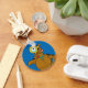 Scooby-Doo is doing serious detective work with his trusty magnifying glass! Scooby-Doo sits up and holds his magnifying glass over one eye while sticking his tongue out.