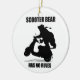 A silhouette of a bear wearing a scarf, doing a one handed wheelie on a motorised scooter and the phrase "Scooter Bear Has No Rules"