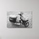 This black and white image of a classic motor scooter parked on cobblestones is the perfect accent to liven up any room. Customise the panel size and proportions to fit your decorative space.