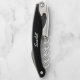 This awesome patterned corkscrew features a digital art image of a black scorpion with big claws and a large sting on the tail curved above the top of its body, with the word Scorpio in bold black text inside the body of the arachnid. A fun design for people celebrating a Birthday born between October 24 and November 21 under the star sign of Scorpio. There is custom text on the back so you can include a name.