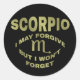 Shaped lettering in golden tones, "Scorpio I May Forgive But I Won't Forget" with symbol. A Scorpio can be your best friend or your worst nightmare. They are loyal to a fault, but they don't forget - and they tend to pay back, for both good and bad done to them. Anyone seeing you use these stickers can't claim they weren't warned.