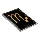 Stylised hammered gold Scorpio astrology zodiac birthday symbol in a hand drawn gold double line frame. This notebook or dream journal or writing pad has Scorpio text in a fine script, which can be personalised to narrate your own story.