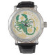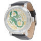 Scorpio sign of the zodiac in green and white on a wristwatch.