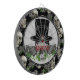 Skull wearing a top hat with scarab decoration, black roses, a smattering of rainbow stars for the eyes, and you have a unique way of announcing your sun sign in red letters.