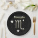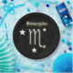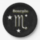 Chrome symbol of zodiac sign Scorpio, astrological paper plates