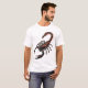 The artwork features a dark, surreal scorpion with glowing red eyes, a tail composed of flames or swirling galaxies, and elements of gothic blackwork tattoo style.