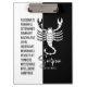 Scorpio Zodiac Sign Black & White Clipboard