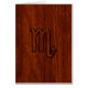 A Scorpio Zodiac Sign applique in a rich brown Mahogany wood grain style print background. A classy modern design for a great custom birthday gift idea.