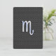 A silver chrome like Scorpio zodiac symbol on a charcoal black carbon fibre texture print decor. A modern urban racy design for a great custom birthday gift idea.