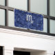 A silver chrome like Scorpio Zodiac Symbol on a navy blue design texture print background decor. A modern urban racy design for a great custom birthday gift idea.