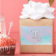 A mother of pearl style Scorpio zodiac sign applique on a pink and blue nacre background decor. A modern urban racy design for a great custom birthday gift idea.