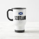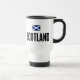 The Scottish saltire in patriotic blue and white with the name "SCOTLAND" written beneath in bold black lettering.