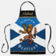 Personalised Scotland Chefs Kitchen Apron featuring vintage patriotic styling with Rampant, Flag of Scotland together with easily customised "city / person" name. Perfect gift for Scottish patriots and sports fans - love my country, fathers day, barbecue, holiday house