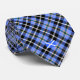 A tie for lovers of Scotland and all things Scottish with a classic blue tartan plaid pattern. There's a discrete graphic of the Scotland flag at the tip, with the white St Andrew's cross on blue. Colours in the tartan are light and dark blue with a dash of green and tan.