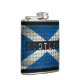 Flask features Scotland's national flag with a woven texture and black background.