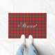 Elegant and interesting door welcome mat featuring the wonderful Scottish Clan Stewart tartan plaid, with custom name.