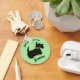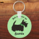 Scottie dog keychain in green bow on green background.