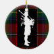 Silhouette of a bagpiper graces a proud Scottish tartan on each side.