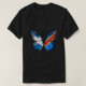 I give wanted to give this a 4 instead of a 5 because these Basic DARK T0shirts run unexpectedly SLIM or Narrow. Which is great if you do not have a potbelly, but I have a paunch. It isn't the shirt's fault that I've got a beer belly. The design and shirt itself is a quality cotton shirt. The color is more of a deep purple, but still a very pretty color. The Basic DARK T-shirts run a bit SLIMMER than the Basic Ts. The neck is a fraction narrower (or seems to be narrower) also. I'm a paunchy middle-aged woman and my neck is 12 inches (31cm) thick and the neckline fell about the same as in the photo of the man, and I had the desire to tug it a bit. So if you're a thick necked man or like loose shirts, be aware these are slimmer shirts. Once I get rid of my lockdown paunch it'll look great. The shirt washed well in cold water with no apparent bleeding. We don't have a dryer, so it hung dry. Did not shrink. Love the colors and the design. The design looks smaller on my shirt than it does on the model on-line. But still, it looks good on the shirt. The printing looks as it does on the model, just the size seems fractionally smaller. Washed garment in cold water, hung dry and design appeared unaffected.