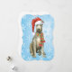 Celebrate the holiday season with a cute Scottish Deerhound puppy wearing a Santa hat amid snowflakes with the words, Happy Howlidays on the back! Great for Deerhound-loving family and friends.