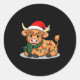 Scottish Highland Cow Christmas Lights Xmas Party Classic Round Sticker