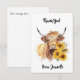 Scottish Highland Cow with Sunflowers. Editable Thank You Card