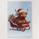 This delightful design captures the charm and whimsy of the season, featuring a fuzzy, woolly Scottish Highland Cow dressed as Santa Claus sitting in a sled, gliding through a snowy winter scene.