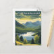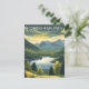 Capture the wild spirit of the north with this Scottish Highlands Travel Postcard. This vintage-style illustration features the dramatic scenery of Glencoe, mist-covered lochs, and rolling hills adorned with a purple veil of heather.