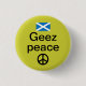 An indy button for supporters of Scottish independence who want nuclear weapons removed from Scotland. Trident costs billions to maintain. The majority of people in Scotland would rather spend that money on important things like education and health. Only a Yes vote in September's referendum can deliver. The slogan on the badge reads 'Geez peace.' Geez is Glaswegian for 'Give us.' Above the slogan is a graphic of the Scottish flag. Underneath is a graphic of the anti-war CND ban the bomb symbol. You can change the green background colour to suit by using the customise button.