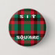 The image features a traditional tartan plaid pattern, a hallmark of Scottish textiles. Superimposed on this rich fabric are the words "SIT" and "SQUARE," arranged vertically. The word "SQUARE" incorporates small cartoonish figures embedded within the letters, adding a whimsical touch. The composition is balanced and focused, emphasising both the tartan design and the text.