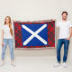 A cool throw blanket for lovers of Scotland and all things Scottish, with a graphic of the Scottish saltire flag with white St Andrew's Cross on dark blue. The background to the Scotland flag is a pattern of the famous Royal Stuart, or Stewart, tartan plaid.