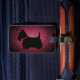 Scottish Terrier, black silhouette, granite pink Luggage Tag