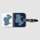 This has two images of a luggage tag has the image of a blue and green tartan plaid Scottish Terrier. The Scottie dog faces one direction on the top, and is reversed to the opposite direction on the bottom. One image is on a background of dark blue, and the second one is on a background of white. Thin dark blue and white stripes separate the two halves. Unique, attractive, and perfect for anyone who loves a Scottie.