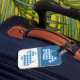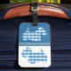 This distinct luggage tag has two images of a blue and white gingham pattern Scottish Terrier. The Scottie dog faces one direction on the top, and is reversed to the opposite direction on the bottom. One image is on a background of darker blue, and the second one is on a background of white. Thin blue and white stripes separate the two halves. Perfect for anyone who loves a Scottie.