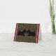 Two cute Scottish Terrier dogs and traditional holiday plaid decorate this Christmas card. The designs are from original art.