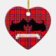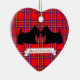 Black scottish terriers against a red plaid pattern decorates this holiday ornament. Use this cute scottie dog ornament as a Christmas tree decoration, holiday decor, Christmas decor, etc....The designs are from original art.