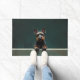 The deep forest charcoal green background adds richness and sophistication, making it perfect for welcoming entryways. Designed with extra space at the top and bottom, it allows easy personalisation with names, welcome messages, or custom text—ideal for unique dog-themed doormats and thoughtful gifts.