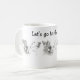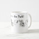 A really cute original black and white line drawing of two dog friends with the text "Let's go to the Park!" graces this fun coffee mug!