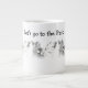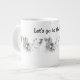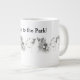 A really cute original black and white line drawing of two dog friends with the text "Let's Go to the Park!" graces this fun jumbo coffee mug!