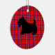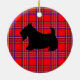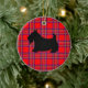 A black scottish terrier against a red plaid pattern decorates this holiday ornament. Use this cute scottie dog ornament as a Christmas tree decoration, holiday decor, Christmas decor, a gift, gifts, etc....The designs are from original art.