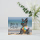 Scottish Terrier puppy wearing sunglasses on the beach. A fun postcard. Message "Life's a beach!" can be removed or replaced with your own message.