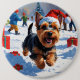 Scottish Terrier Running Snow with Christmas Hat 6 Cm Round Badge