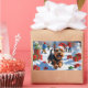 A cheerful Scottish Terrier runs happily through the snowy winter scene, wearing a festive red Christmas hat. This charming design highlights the breed’s distinctive silhouette, wiry coat, and spirited personality while capturing the warmth and joy of the holiday season. A delightful winter moment full of festive cheer.
