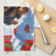 Scottish Terrier Running Snow with Christmas Hat Tea Towel
